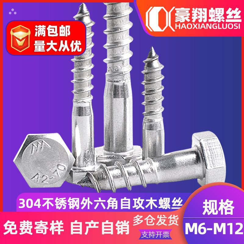 304ステンレス全歯外六角タッピングねじ六角頭半歯木工ねじm 6 _ m 8 _ 10 _ m 12