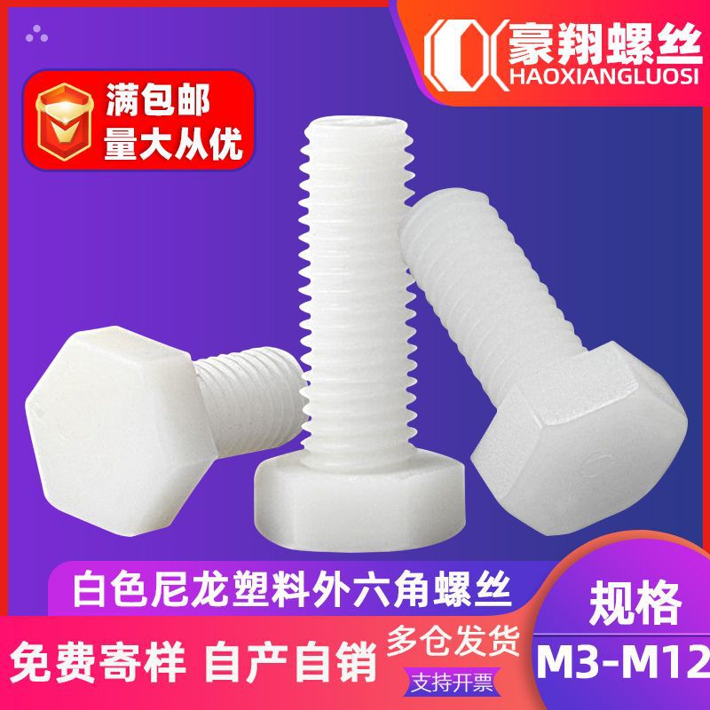白色プラスチック外六角ねじ環境保護ナイロン六角ボルト機歯ねじm3/m4/m5/m 6/m 12