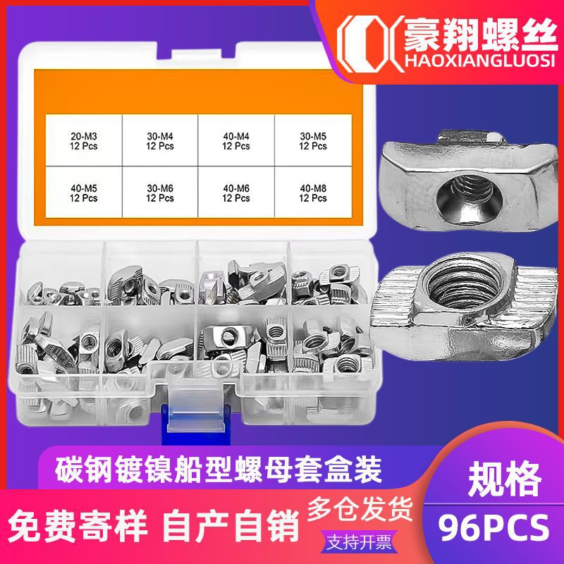 炭素鋼ニッケルメッキ組み合わせセットt型ナットm 6m 8箱入りねじナットクロスボーダー船型ナット96pcs