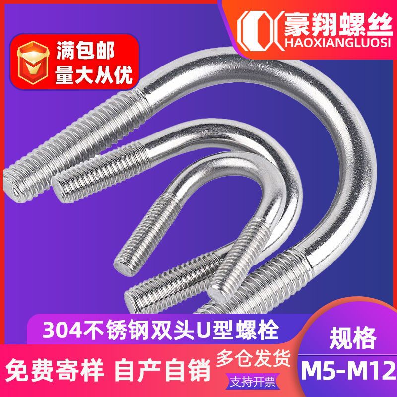 304ステンレスuボルト乗马パイプフープu字型カードパイプクランプダブルu型ネジm 5 | m 8 | m10 | m 12