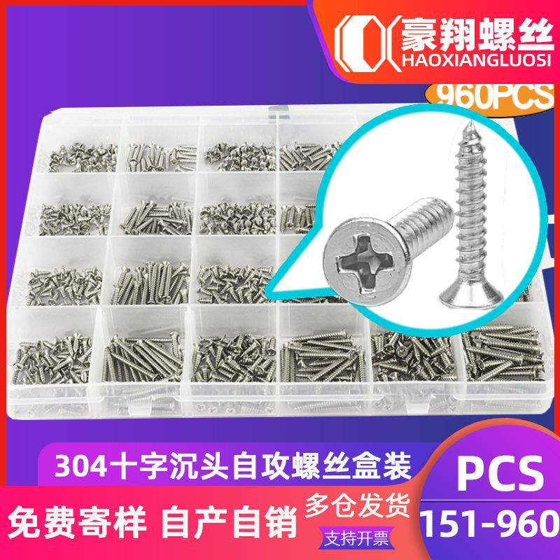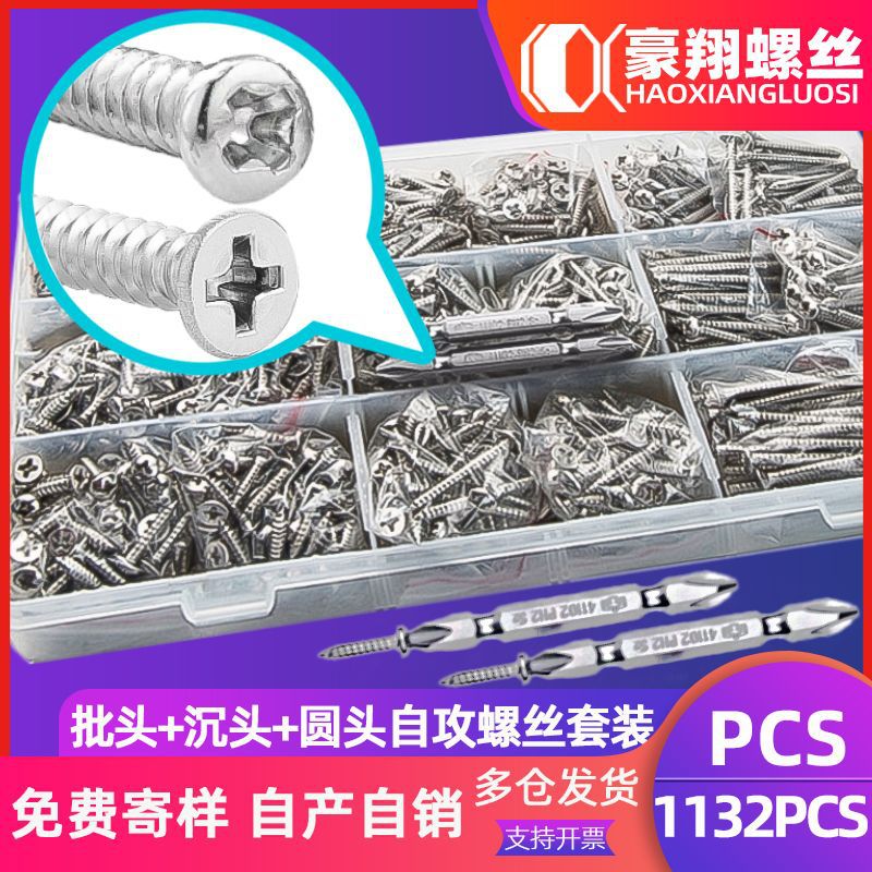 304ステンレス十字沈頭丸頭タッピングセットねじ平頭盤頭タッピングケースねじ1132pcs