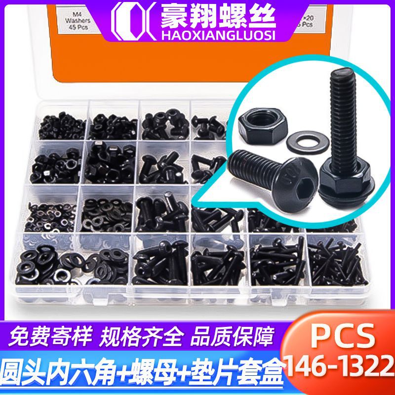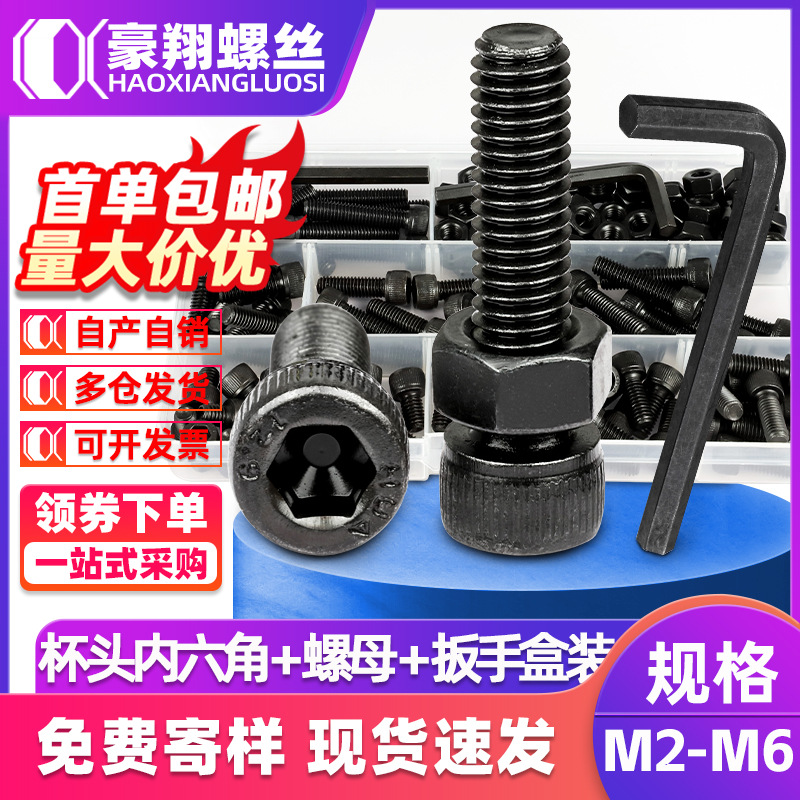 クロスボーダー黒円筒頭六角穴付きネジとナットセット外国貿易炭素鋼カップヘッドネジナットレンチボックス