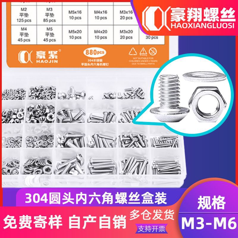304ステンレス円筒頭六角ねじナットセットカップボルトケースメーカー卸売り1322pcs