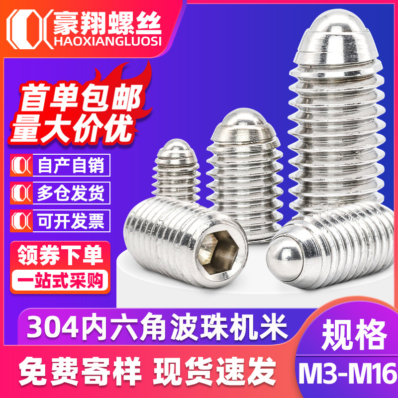 304ステンレスのボールマシンの米のねじのボールの頭の中で六角の波のねじの位置決めのスプリングのプランジャーの締め付けのねじ