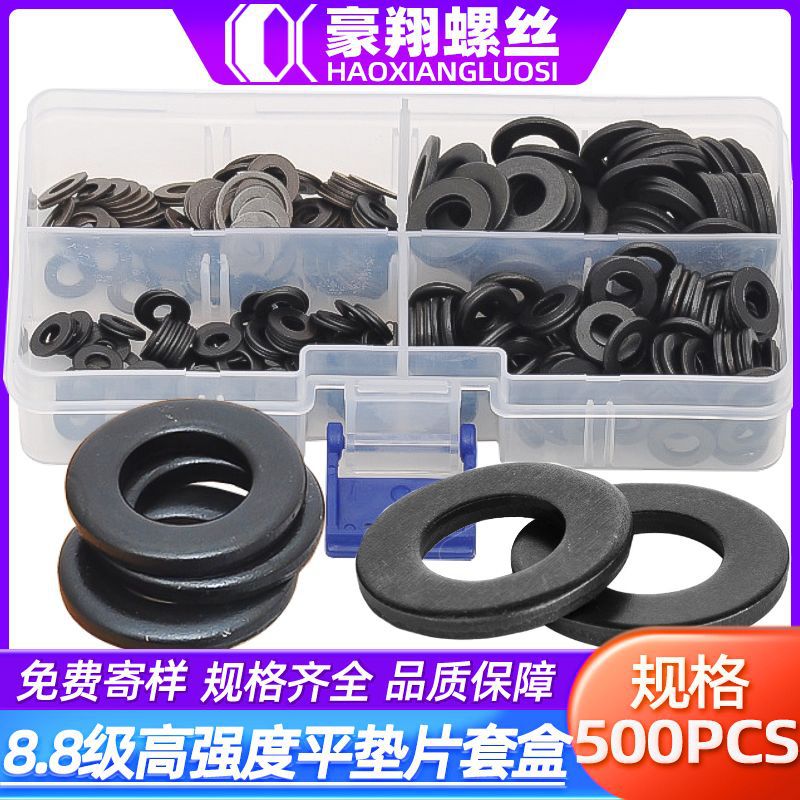 8.8級高強度平ガスケットセットは黒色鉄ガスケットの箱に入って卸売りm 4/m 5/m 6/500pcsを発行する