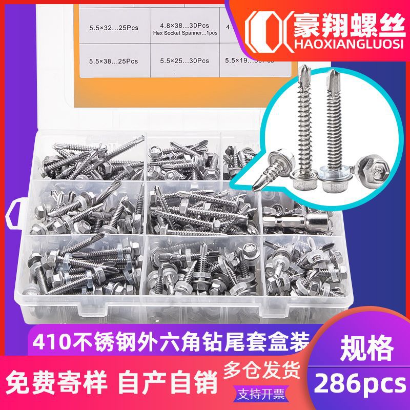 410ステンレス外六角ドリルセットネジフランジ面六角自攻自攻ドリルケースアリ釘