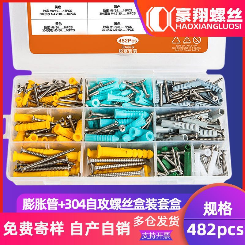 304ステンレス沈頭タッピングねじ膨張管セットグリーンゴム栓膨張ねじセット482pcs