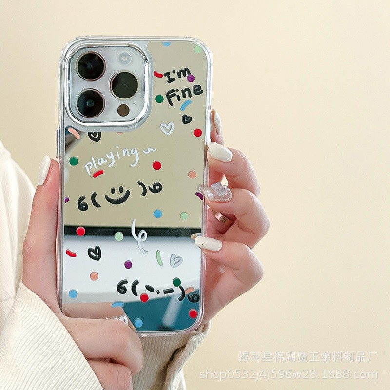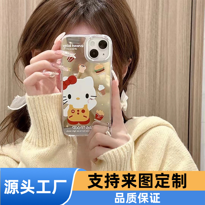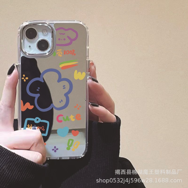 韓国ins創意鏡面メイク直し漫画kiti適用iphone15pro14plus新転倒防止保護カバー