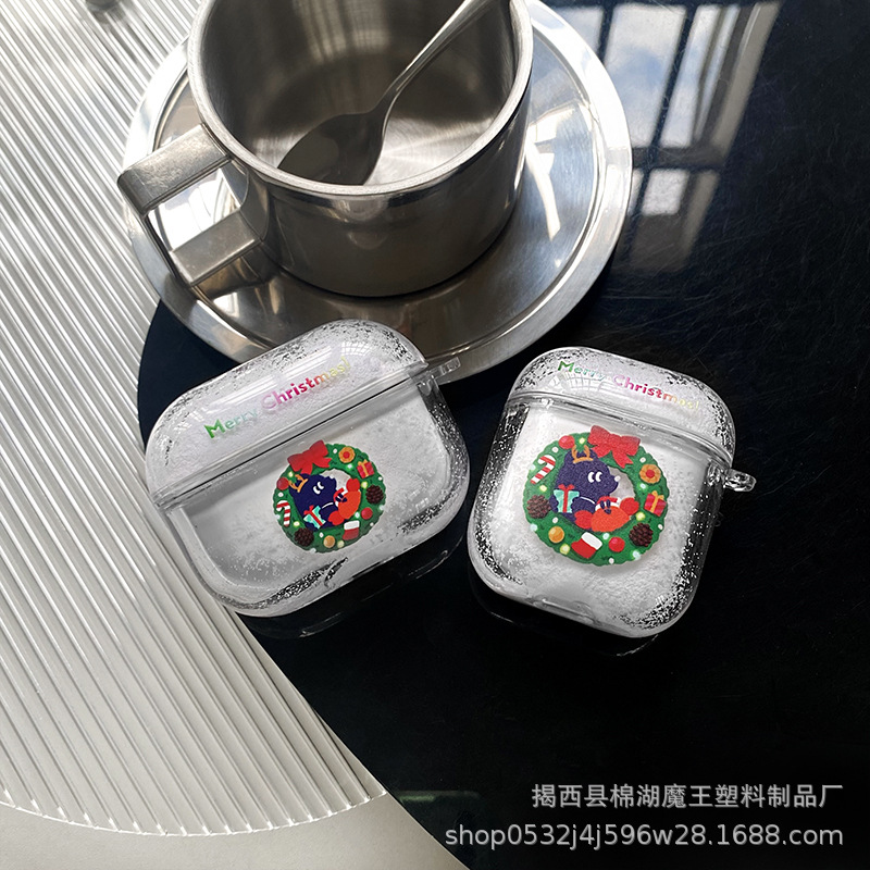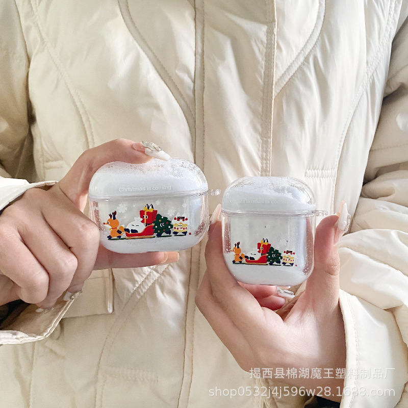 クリスマスの雪の流砂はairpods1/2世代の保護カバーのリンゴの3ハードケースのpro2世代のbluetoothイヤホンのカバーを適用します。