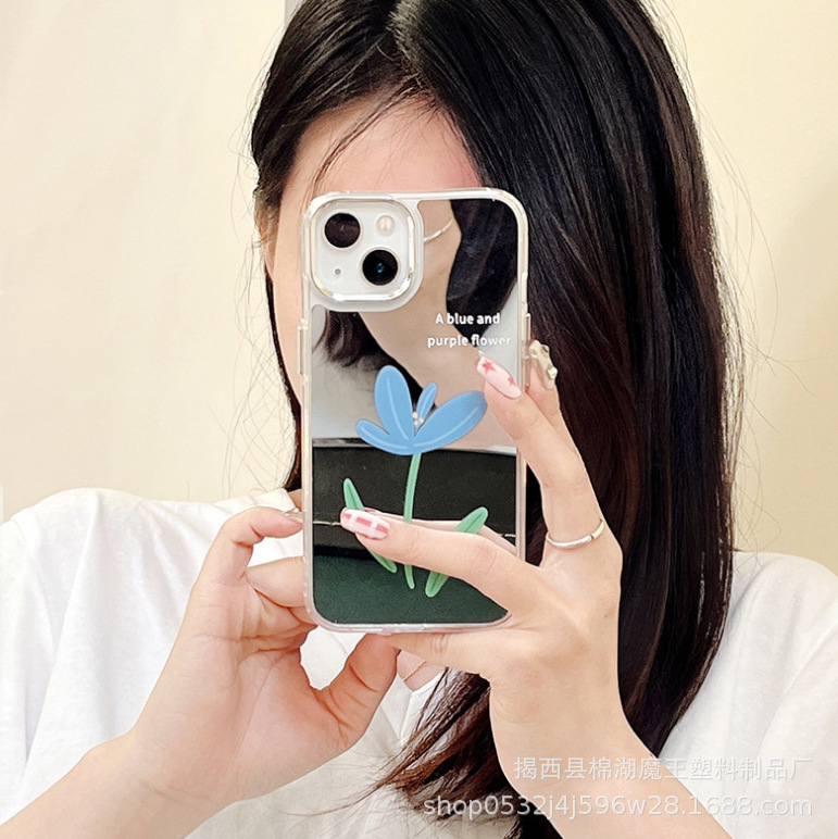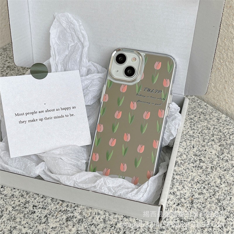 チューリップはiphone15promax携帯電話ケースリンゴ14/13鏡面三合一12pro保護カバーに適用されている