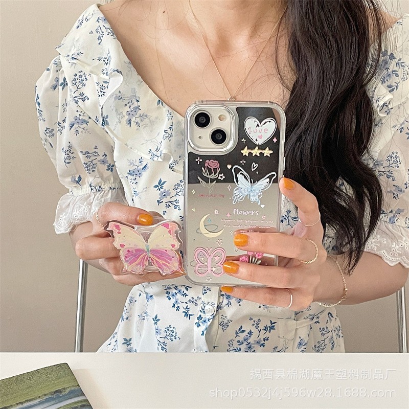 落書き花火蝶鏡面適用iphone15三合一12promax携帯電話ケースリンゴ13保護カバー