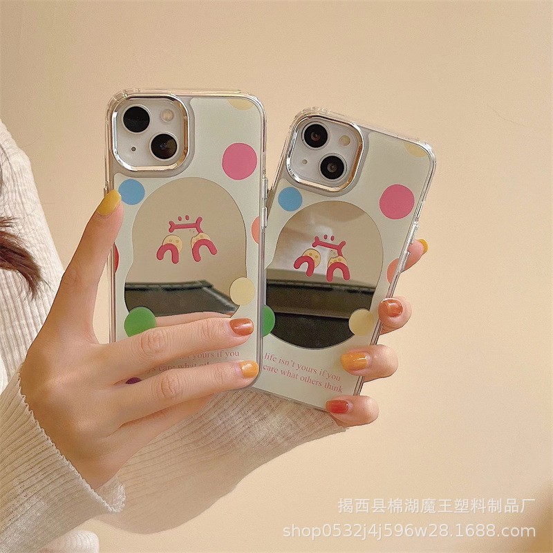 波点かわいい13pro/14promax携帯ケースジャガイモの表情にリンゴ15鏡面ケース12maxを適用