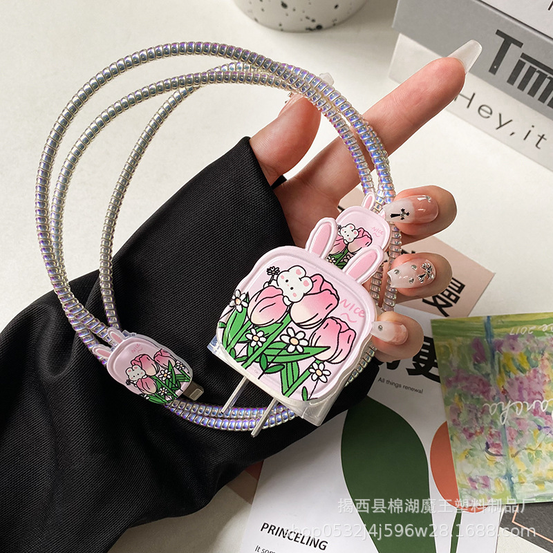 チューリップ波ウサギ適用リンゴ20w充電ヘッド透明保護カバー18w充電ヘッドiphoneプラグソフト