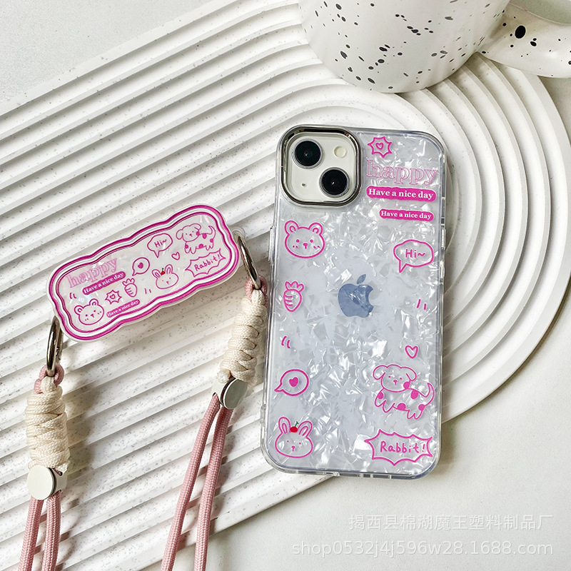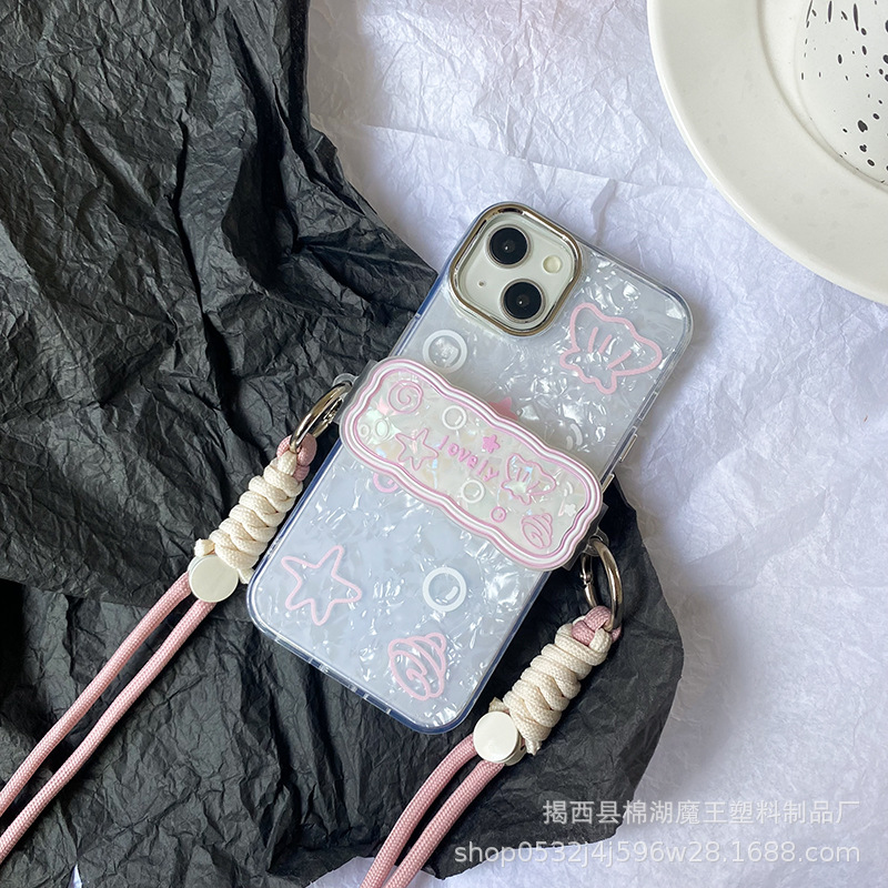 貝殻紋はリンゴ13保護カバー落書きバッククリップiphone14plus二合一携帯ケースストラップ12を適用している