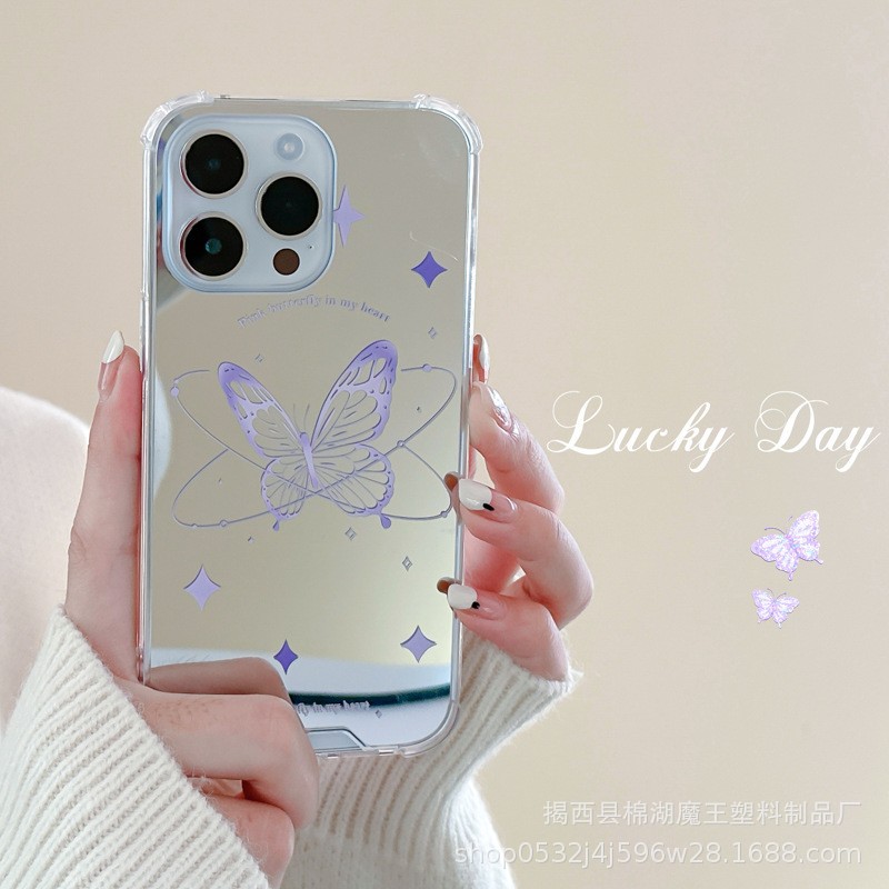 蝶メッキiphone15plus適用鏡面携帯ケースリンゴ14転倒防止13保護カバー12promax