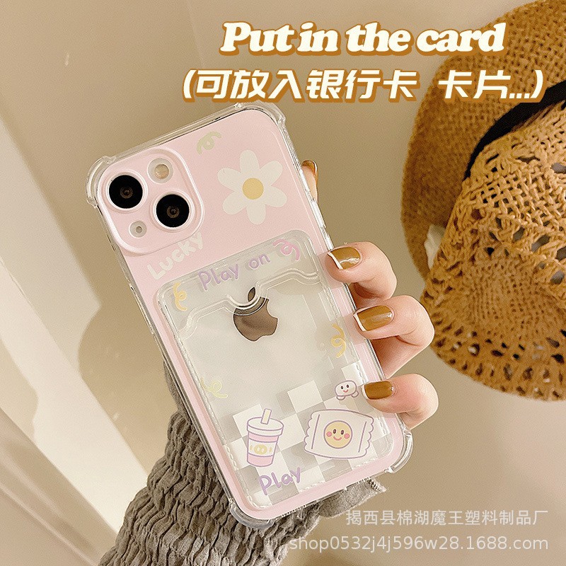 落書き笑顔カードケース透明アップル14適用携帯ケースiphone13promaxソフト保護カバー12mini