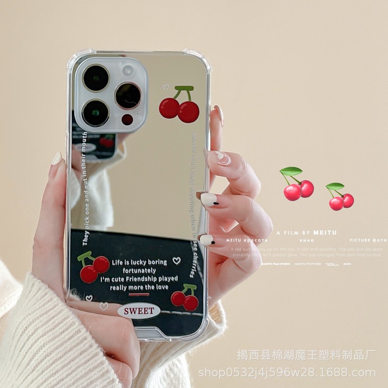 果物iphone携帯ケース14pro鏡面ケースリンゴ13pro max適用メッキ保護カバー12mini