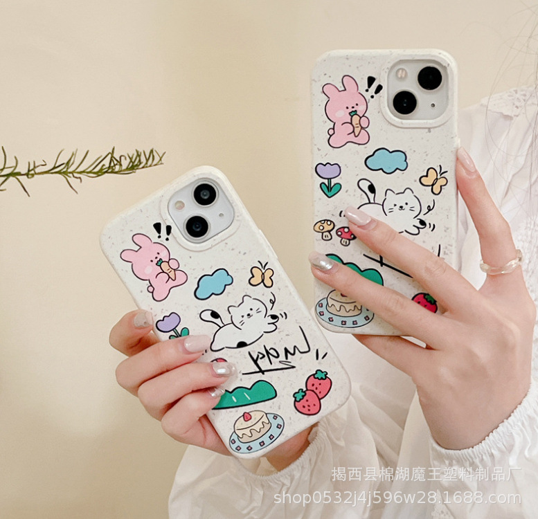 分解性アニメはiPhone15promaxリンゴ14イラスト動物携帯ケース保護カバー13花を適用する