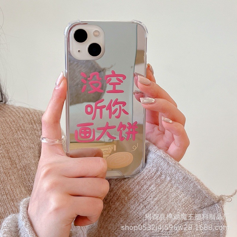 Iphone14携帯ケース鏡面クリエイティブ文字13pro max鏡面保護カバー12メッキリンゴを適用
