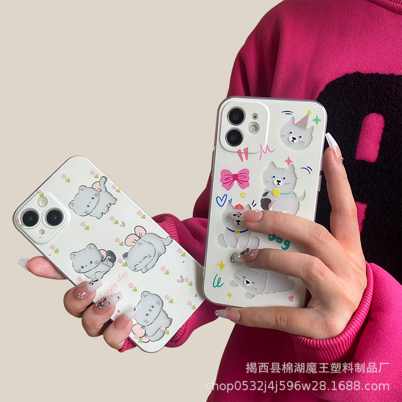 かわいいカップルは13promaxカップルの子犬リンゴ12漫画11携帯ケースiphone14保護カバーを適用します