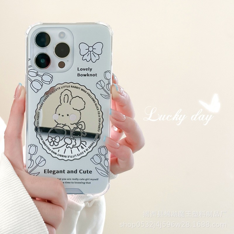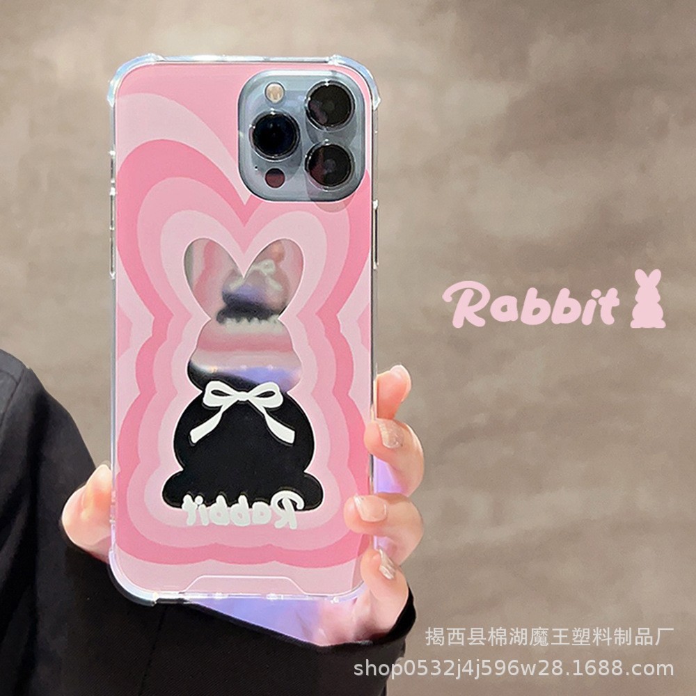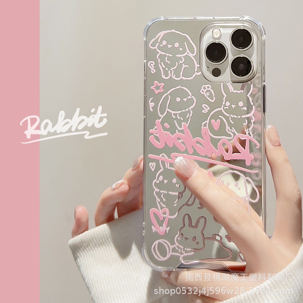 メッキ鏡面iphone14plus適用アップル13携帯ケース12promax保護カバーかわいいウサギ11