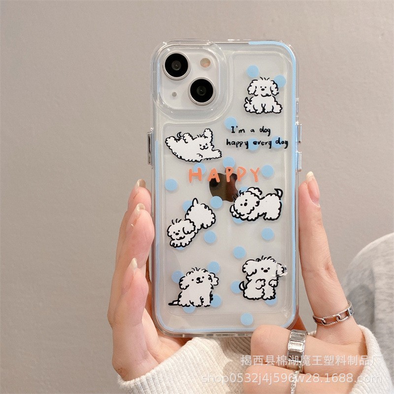 アニメの巻き毛犬はリンゴ14promax宇宙携帯ケースiphone13/12かわいい透明ケースを適用している