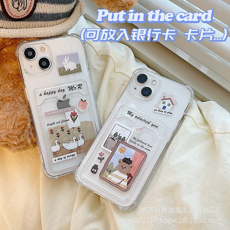 アップルの携帯ケース14promaxカードケース12/12pro漫画熊透明iphone13ソフト保護カバー