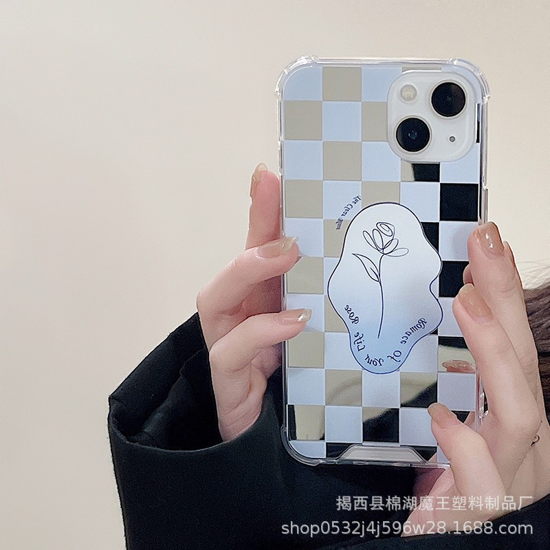Ins格子iphone14pro韓国系保護カバーカードケース13promax透明ソフトケースアップル12携帯ケース
