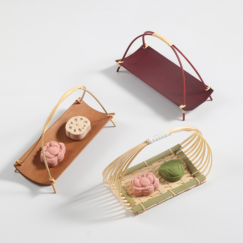 手作り竹編みバスケット家庭用ティープレート果物バスケット菓子トレイ創意竹バスケット結婚竹編みバスケット