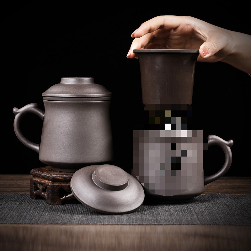 紫砂オフィスカップ蓋付きフィルター付きお茶分離オフィス個人ティーカップマグカップお茶を飲む主人