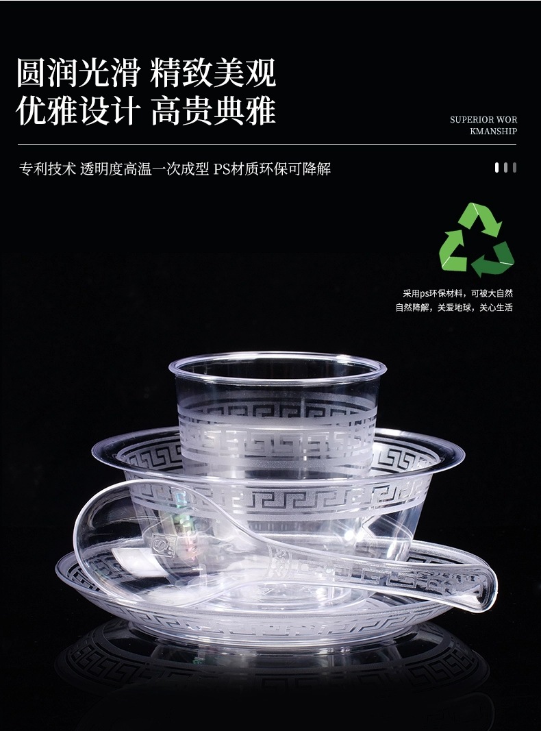 使い捨て航空水晶食器4点セット食品級ハードプラスチック食器セット卸売り耐高温分解性