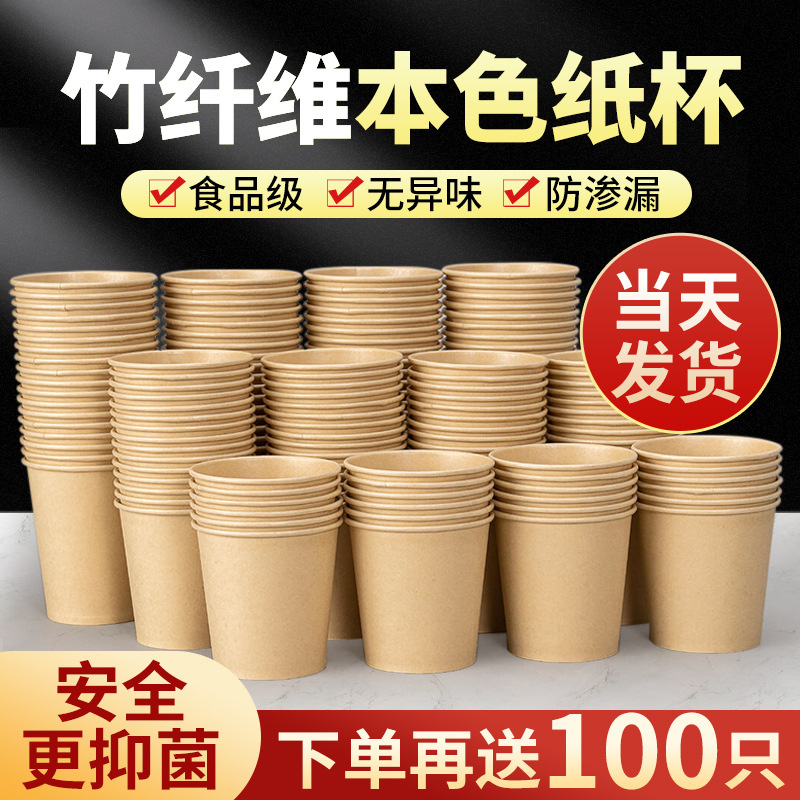 使い捨ての紙コップのコップの箱は竹の繊維の地色のコップの商用のお茶のコップの家庭用の厚い熱い飲み物のコップを決裁します。
