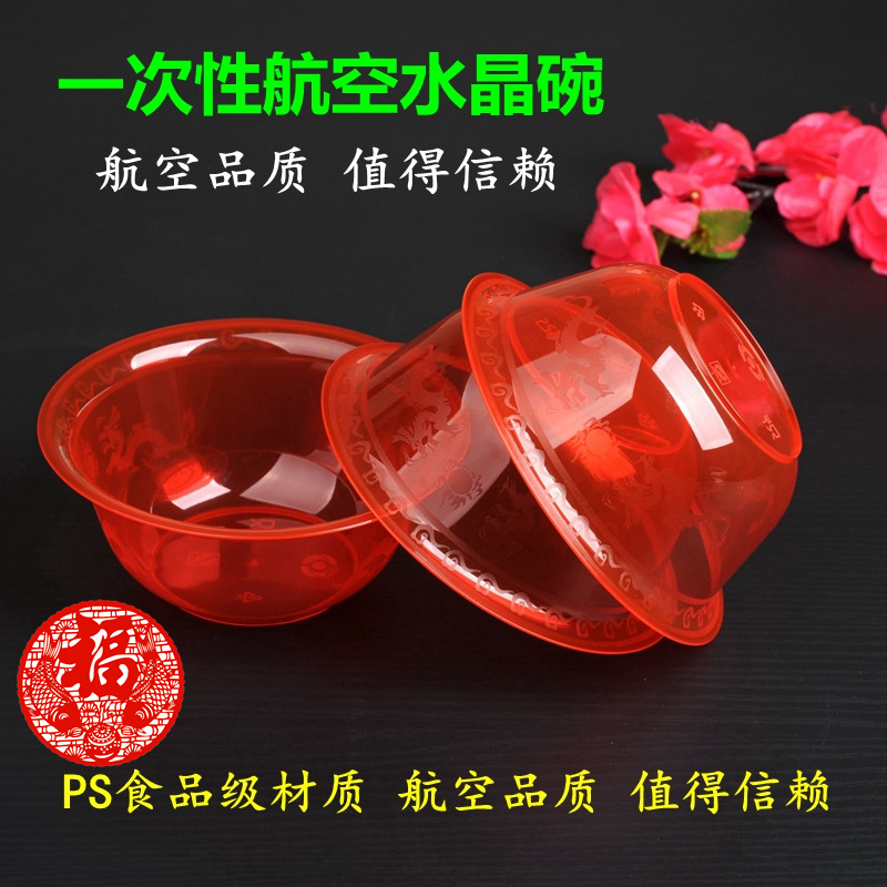 喜碗使い捨て航空水晶碗杯厚手硬質プラスチック結婚赤い皿結婚祝い食器