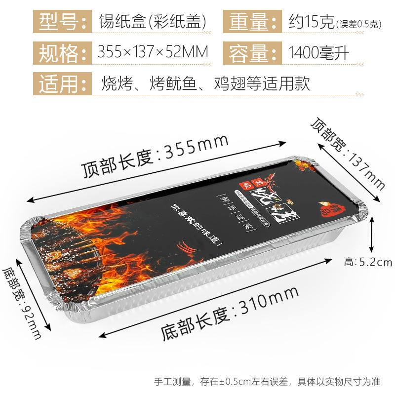 Jバーベキュー包装錫紙箱使い捨て長方形アルミ箔弁当箱蓋付き保温延長販売串錫箔b