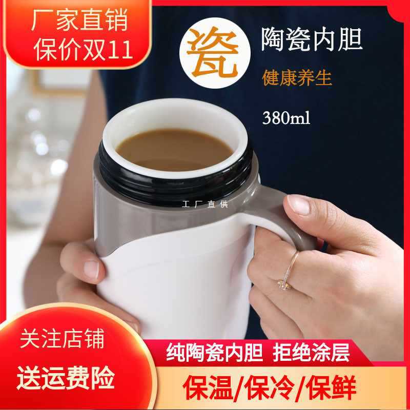 セラミック内胆保温カップオフィスカバー付き女性男性カップハンドル付き家庭用クリエイティブ個性シンプルマークカップ