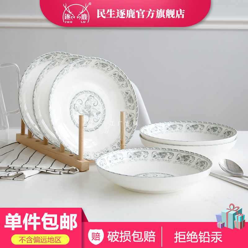 民生逐鹿陶磁器皿中国式食器家庭用7/8インチ料理皿秋韻円盤魚皿マイクロ波