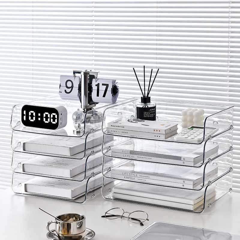 デスクトップファイル収納棚透明オフィス本棚物置棚アクリル引き出し箱資料書類整理箱