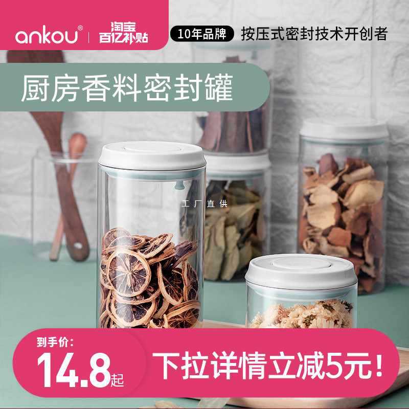 ボタン押し式キッチン香料収納ケース乾物ガラス密封缶食品級砂糖陳皮貯蔵タンク