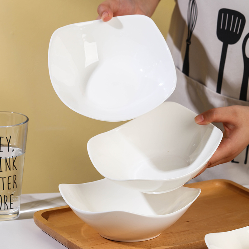 B & シンプルな純白7.5インチ四角皿クリエイティブ料理皿セラミック足立ちボウル家庭用料理ボウルサラダボウル