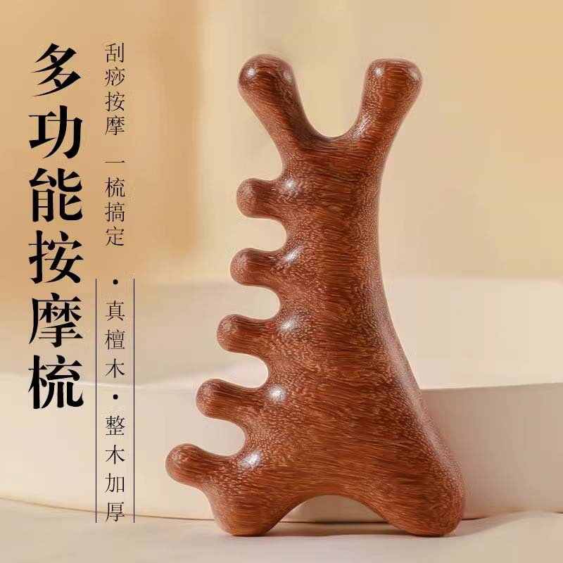 マッサージコーム、厚くて耐久性のある丸いコーム歯、頭皮を傷つけない経絡ブラシ、家庭用鹿角スクレーピング、ツボを浚渫する木製ブラシ