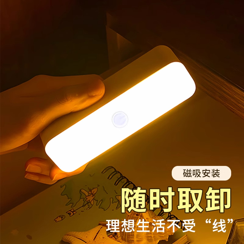 小夜灯LED磁気吸引無痕無穴スマートセンサーランプ三色ボタン付き調光可能アイベッドヘッドライト