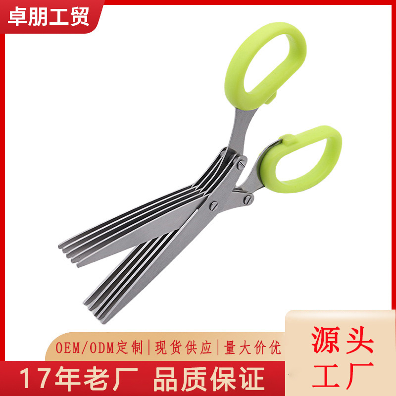 ステンレスの5層のネギのはさみの台所はネギの紫の野菜を切って強力に多層の補助食の唐辛子のはさみを切って卸売りします。
