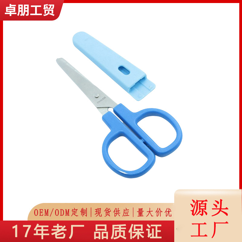 ステンレス子供はさみPPハンドル学生用丸頭小はさみカラー学生文房具はさみ卸売り