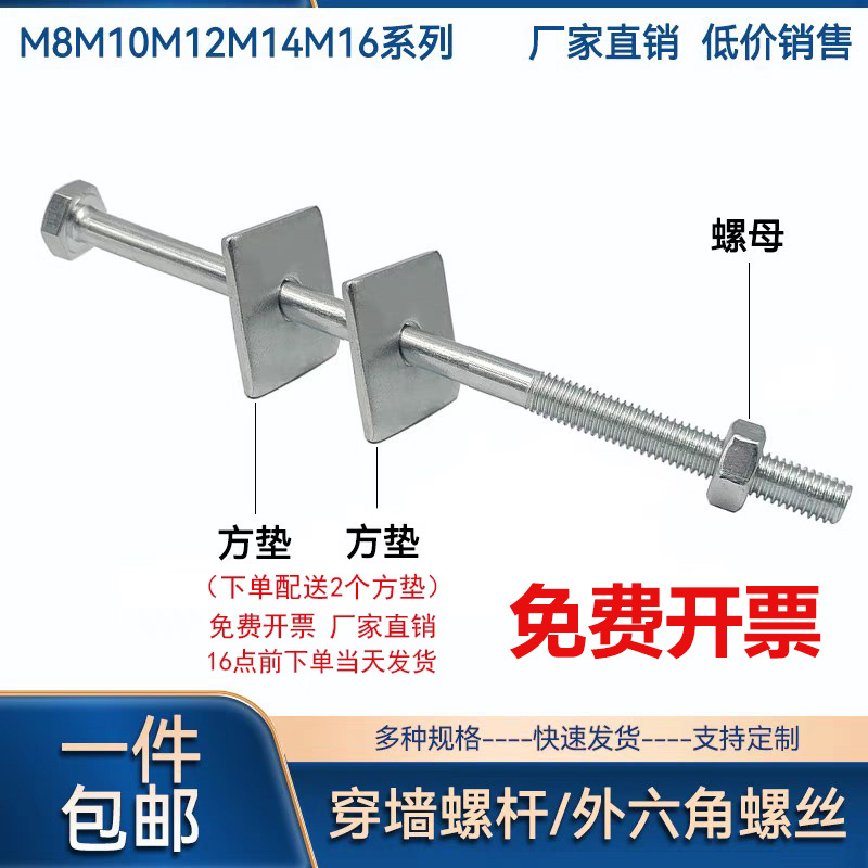 超長壁貫通ネジ、4.8級亜鉛メッキ外径六角ネジ、マザーマスク付き国家標準超長ボルト、角パッドM6-16