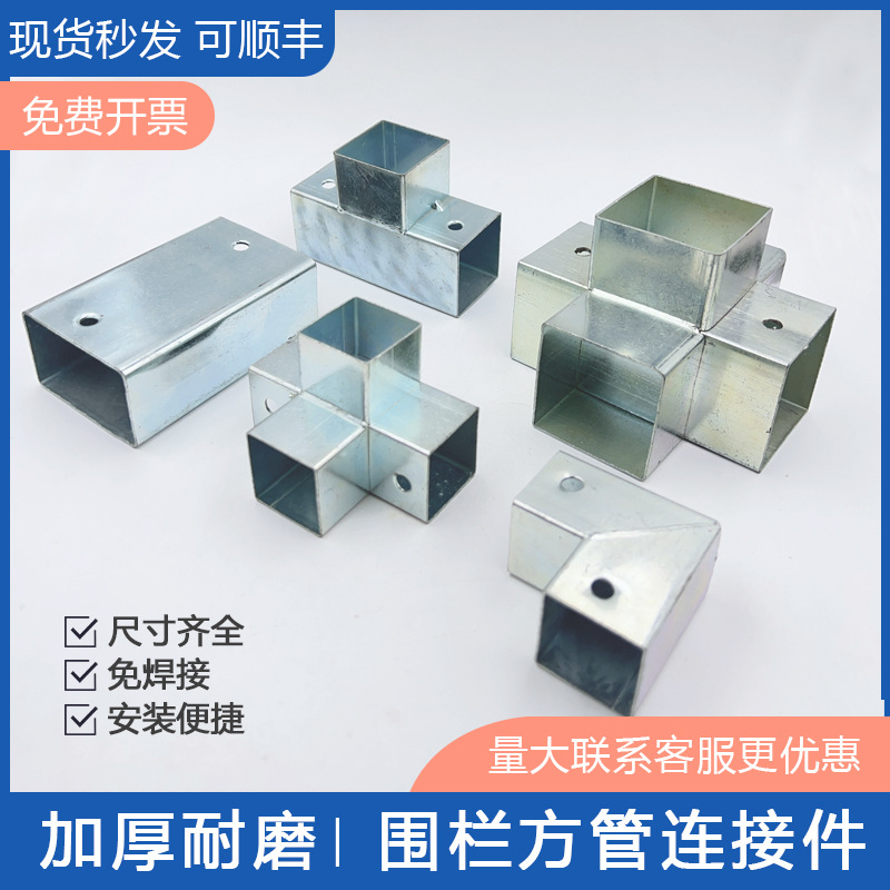 角管コネクタ、溶接不要の三方コネクタ、亜鉛メッキパイプ二方十字角鋼保護フェンス固定具