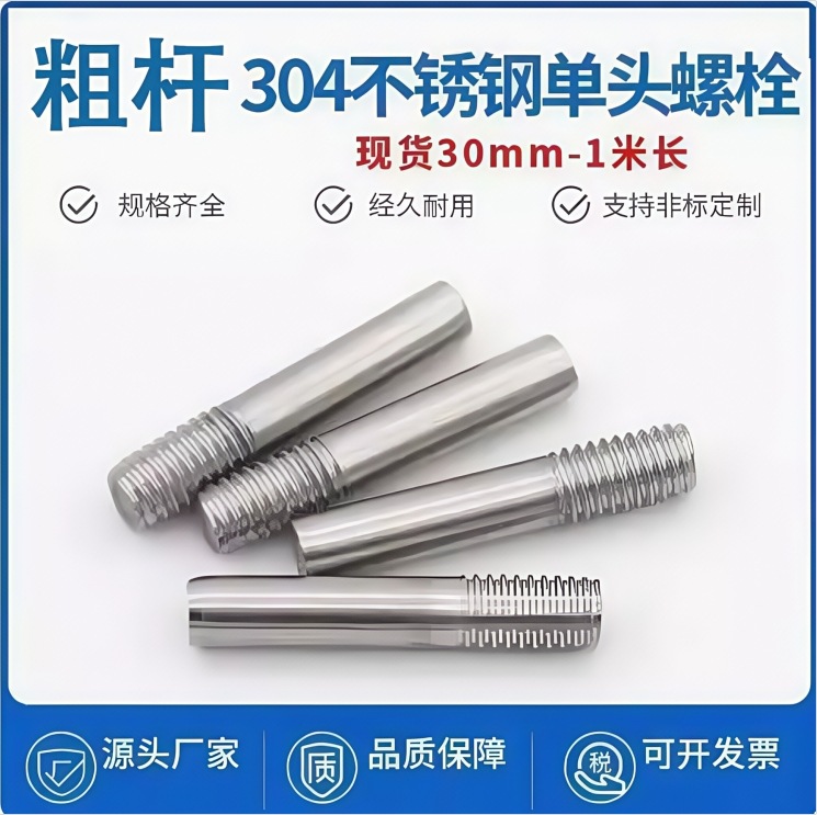 304 ステンレス鋼単頭太棒ネジ、ボルト、スタッド、延長ネジ、1 ヘッドネジ加工、カスタマイズ M6M8M10M12