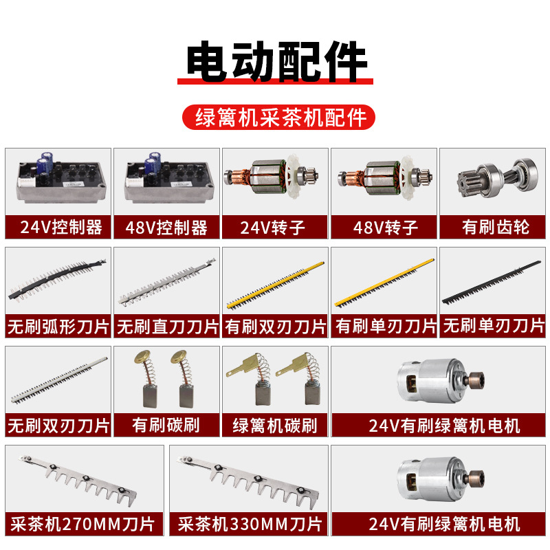 電動ヘッジトリマー、芝刈り機、茶摘み機、スペアパーツ、ブレード、カーボンブラシ、コンロッド、モーターローター、コントローラー、ギアボックス