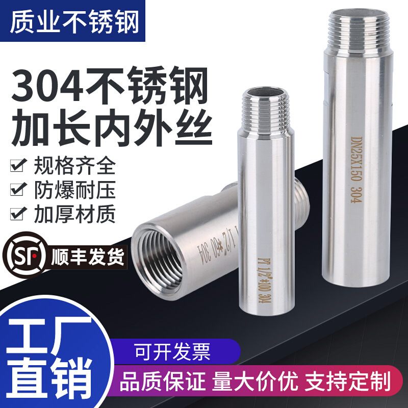 304 ステンレス鋼の内外ネジ延長パイプ水道管ジョイント 4 分 6 分 1 インチ延長内外ネジジョイント鋼管変換