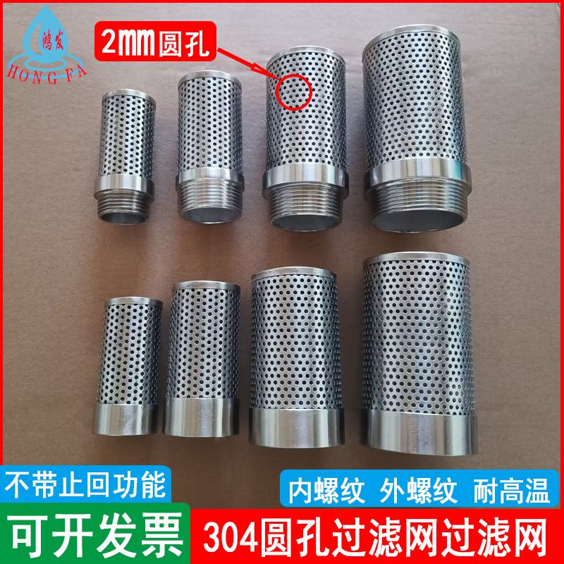 304オールステンレス鋼雌ねじ高温フィルター水道管ウォーターポンプ入口雄ねじ溶接丸穴フィルター