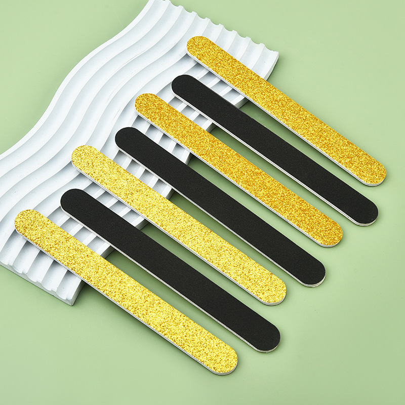 シンプルな金色のサンドペーパーやすりの両面はネイルアートの木片で爪やすりで爪を磨くことができます。